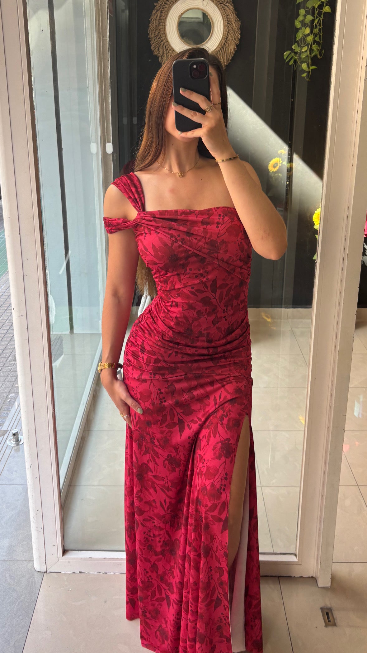 Vestido Drapeado Vuelo Asimétrico Estampado